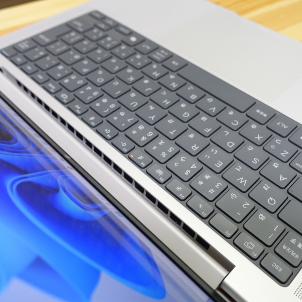 また通気孔のあるキーボードの上部もちょっと温かくなりますが、 熱い、というところまでは感じませんでした。パームレストに熱はほとんど感じなかったですね。