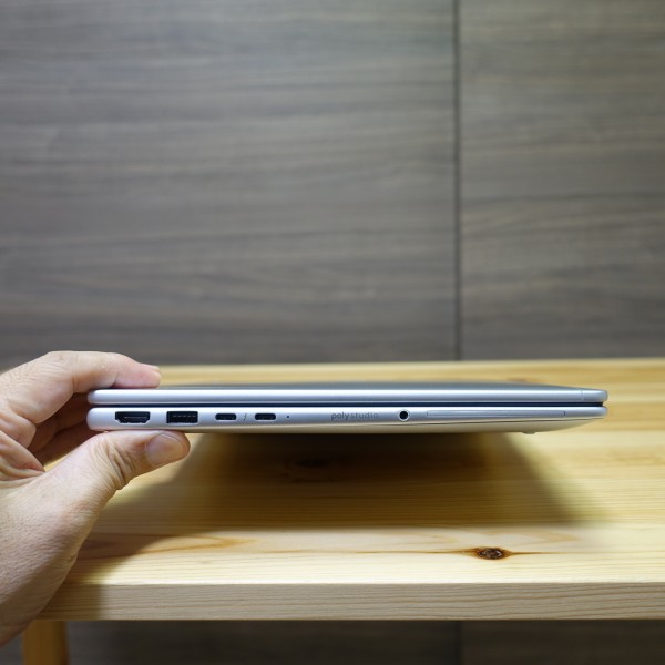 左側面部。HDMI、USB Type-A、USB Type-C(Thunderbolt4対応)×2、オーディオ・マイクコンボ端子が配置されています。