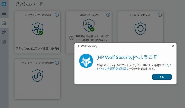 「HP WOLF SECURITY」というセキュリティアプリが同梱されています。