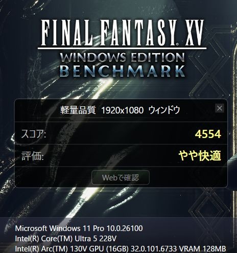 重い負荷のかかるFF15ベンチマークの結果は「軽量品質」で「やや快適」、「標準品質」で「普通」、「高品質」で「普通」。