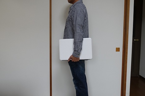 重量は約2.2kg。片手で持つには重いですが、ちょっと移動するぐらいなら問題ありません。