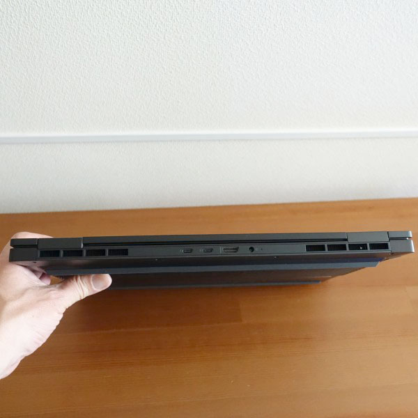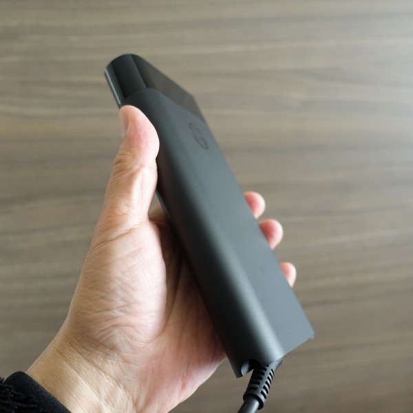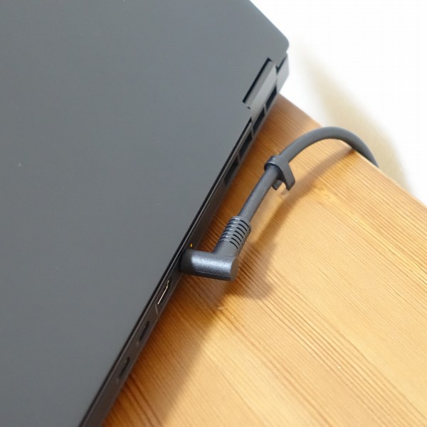 ACアダプタは、搭載しているグラフィックスによって 異なる可能性があります(レビュー機はNVIDIA GeForce RTX3060搭載モデル)。消費電力が大きい高性能グラフィックスを搭載しているため、 ACアダプタも大きめです。