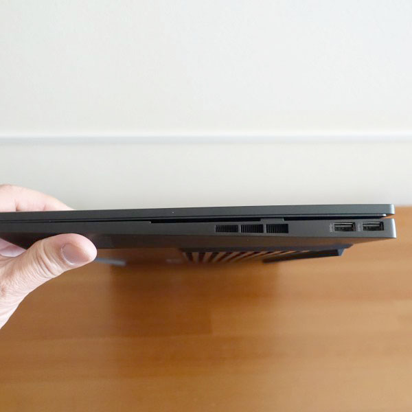 キーストローク(キーを押し込む深さ)は1.5mm。 最近のノートPCとしては標準的なレベルのキーストロークです。