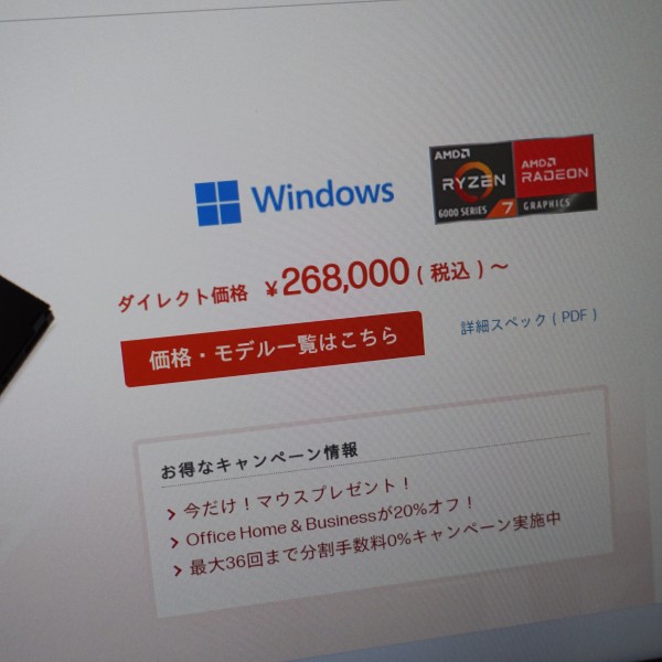 最大解像度はFHD対応の1920×1080ドット/QHD対応の2560×1440ドットのパネルを搭載したモデルを選べます(レビュー機はFHD対応パネル搭載)。