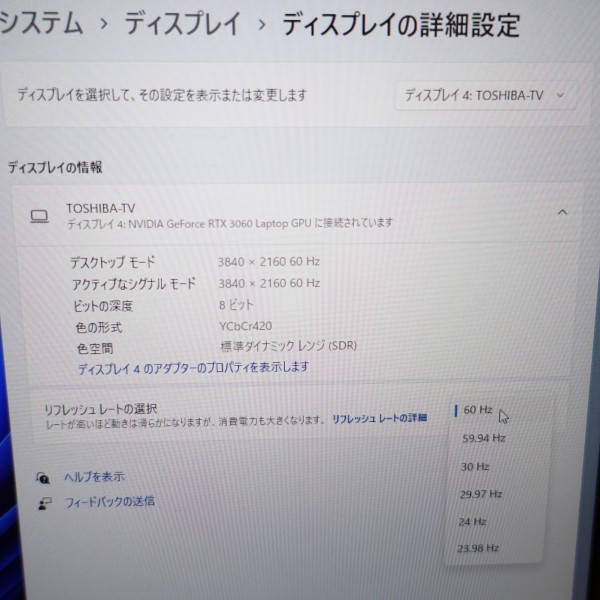 リフレッシュレートが低いとチラツキが生じたり、映像が滑らかに表現されない、などの問題が生じ、ゲームを存分に楽しむことができません。