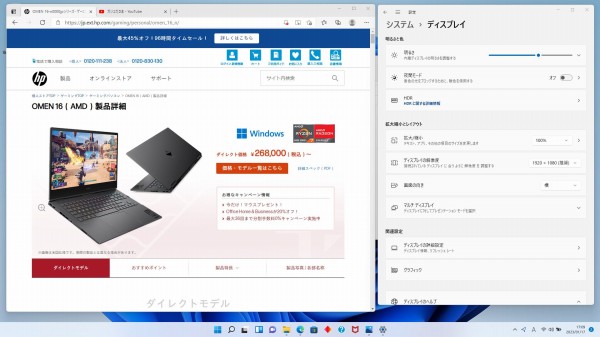 16.1インチという大きめのパネルを採用しているため、100%表示でも文字表示が小さすぎるという印象は受けませんでした(個人によって受け止め方が異なると思います)。