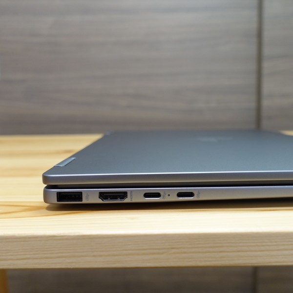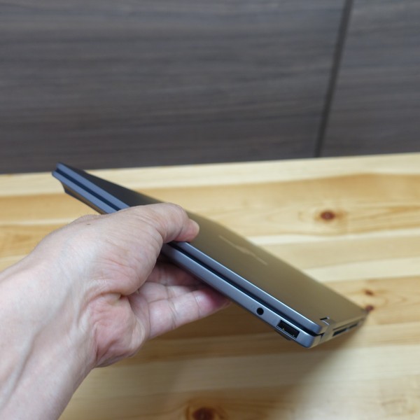 2-in-1タイプだとボディが重くなりがちですが、本モデルは14インチ2-in-1 PCとしてはそんなに重くはない印象を受けます。すごく軽い、という感じではないですが、 これぐらいの重さなら、個人的には外に持ち出して使おうと思える重さかな。