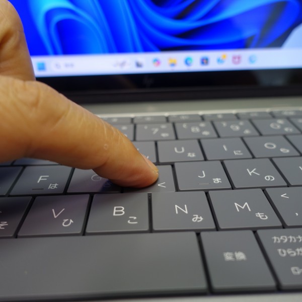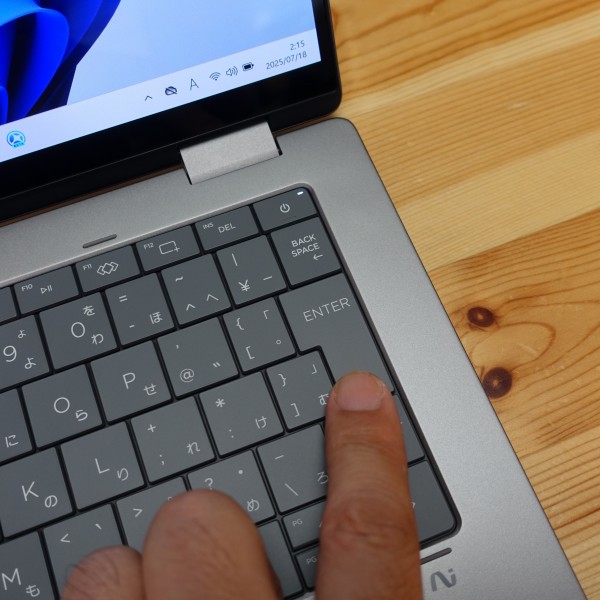 ただし、隣のキーとの隙間が狭いため、隣のキーを押してしまいそうになりますね。ちょっと慣れが必要かも。
