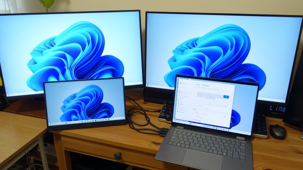 HDMI端子、USB Type-C端子×2にそれぞれモニタを接続して、