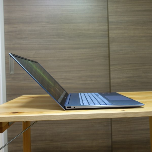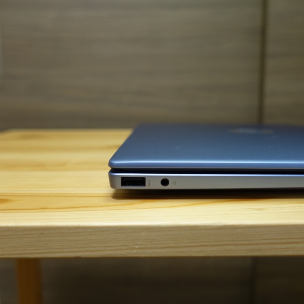 左側面部。USB Type-A、ヘッドホン/マイクコンボ端子を配置。