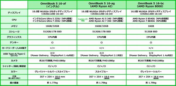 →参考:OmniBook 5 16-ag/af/bcの特徴・比較