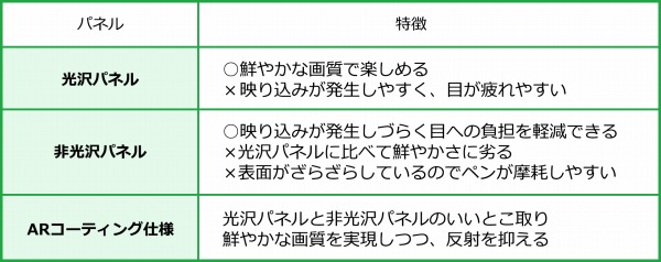 タッチパネルの場合、光沢パネルを採用するモデルが多いのですが、本モデルでは光沢パネルよりも反射が少ないパネルを採用。