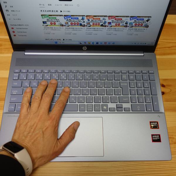 キーボード上部も触るとほんのりと温かいですが、パームレスト部分に熱はほとんど感じませんでした。
