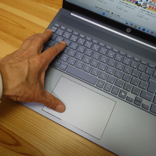 タッチパッドは、クリックボタンが一体となったタイプを採用。結構大きめです
