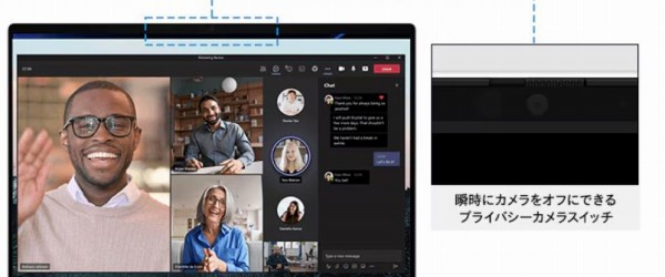 カメラシャッターを搭載しているほか、マイクオフ機能も利用可能です。