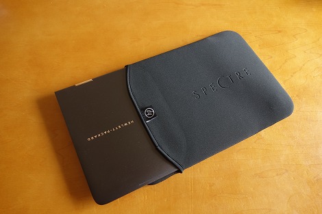 専用スリーブケースも同梱されています。表面に「SPECTRE」の文字が刻まれています。