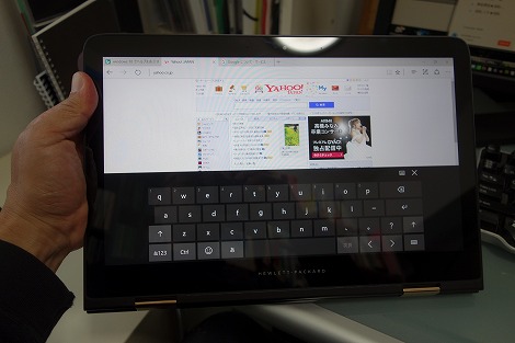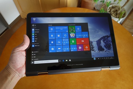 Spectre 13-4100 x360は液晶を360度回転させて使用することが可能。