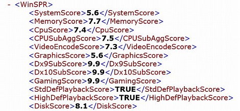 パフォーマンスを計測するため、Windowsエクスペリエンスインデックスの値をチェックしてみました。