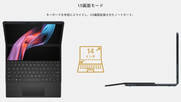 パネルサイズは14インチ。かなり縦長の表示になります。液晶部分の折り目が斬新ですね。なおキーボードは英語キーボードのみを選択可能。日本語キーボードは用意されていないそうです。