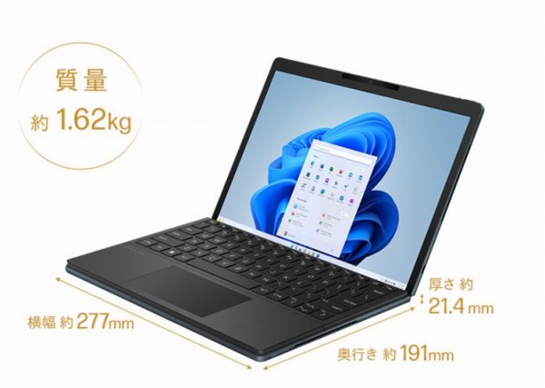 | 寸法 | 約 277 × 191 × 21.4 mm (折りたたみ時) 約 277 × 376 × 8.5 mm (展開時 ※ディスプレイのみ) |