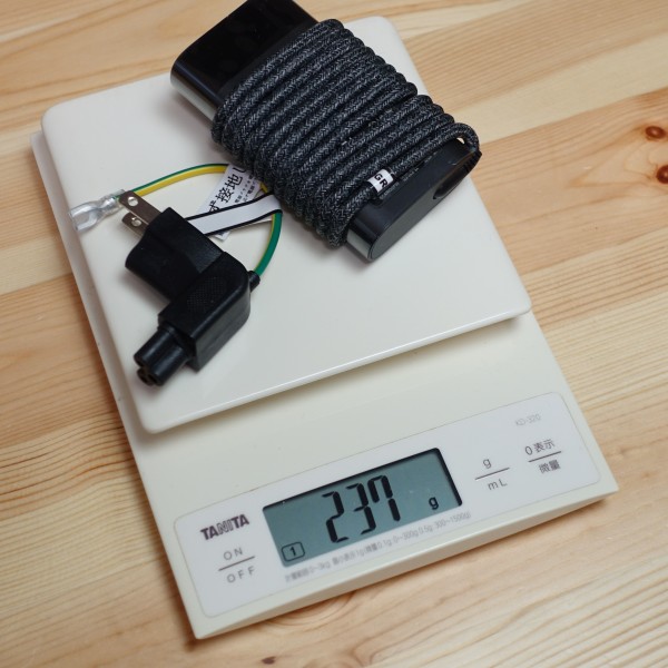 ACアダプタとコンセントのみのパーツを合わせた重量は237g。