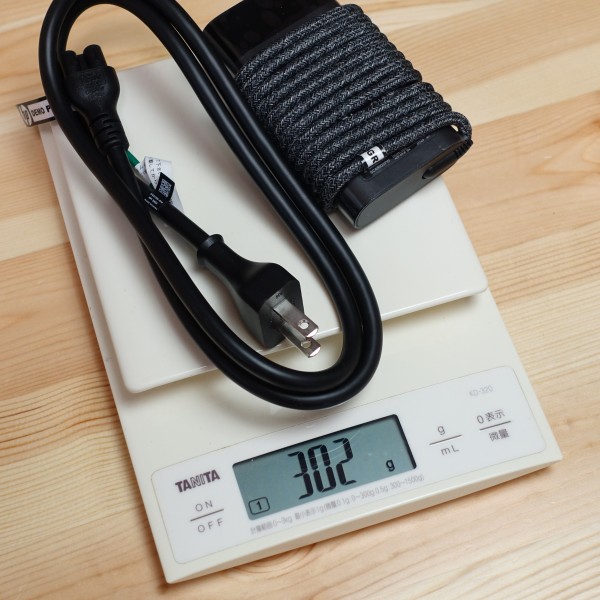 ACアダプタと電源ケーブルを合わせた重量は302g。