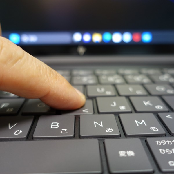 キーピッチ(キー間の距離)は18.7mm。フルサイズのキーボード(19mm)よりも若干狭めですが、 タイピング時に窮屈な感じはほとんどしませんでした。