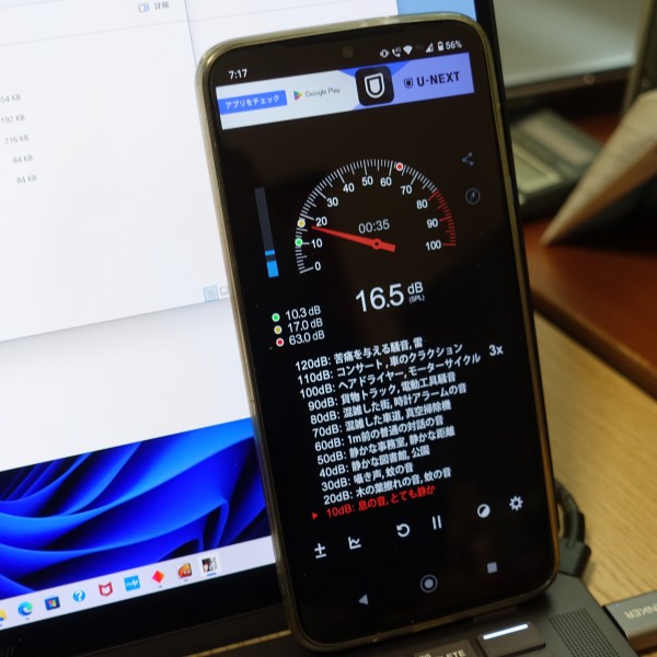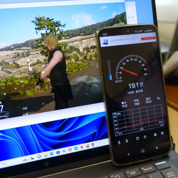 ファンの音をスマホの騒音計アプリで計測したところ、ネットを見るなど負荷が軽めのタスクを処理しているときは 16dB程度で非常に静か。ほとんどファンの音が聞こえてきません。