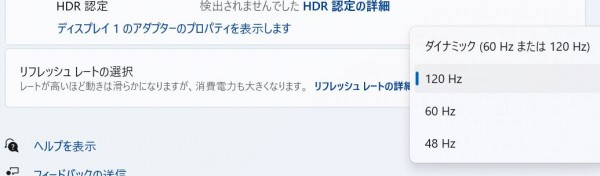 | 最大リフレッシュレート | 120Hz |