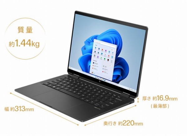 Spectre x360 14-euは、HPのハイエンドノートPCに位置づけられており、デザインにもこだわっています。