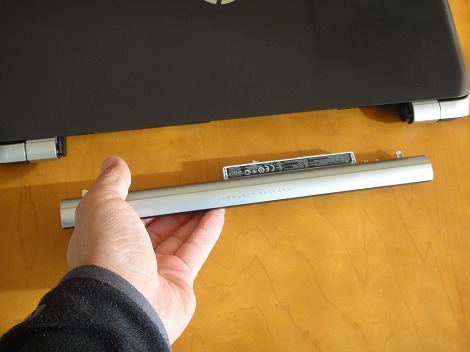 底面部。バッテリを取り外せるほか、ネジを外せば、筐体内部にアクセスできるようになっています。