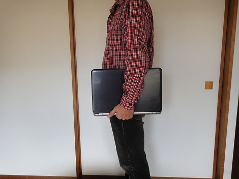 重量は2.4kgあるのでそれほど軽いわけではありません。ただ、無茶苦茶重いというわけでもなく、ちょっと移動するぐらいなら、問題なく持って行けます。